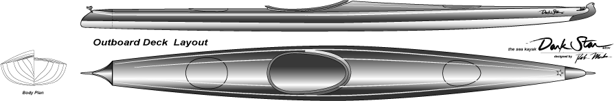 | For current pricing for a finished Dark Star follow this link. Contact Laughing Loon for details. Plans for the Dark Star are available now! I have the Dark Star pictured here at my shop for you to view or test paddle. Now available with a retractable skeg. The Dark Star tracks very well, as do all my baidarka designs. A skeg is an additional aid, keeping the kayak running straight and smooth in the two toughest paddling conditions, a strong beam wind, and breaking following seas. | |||||||||||||||||||
