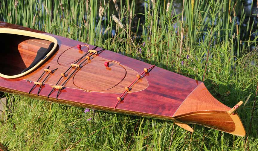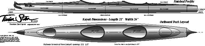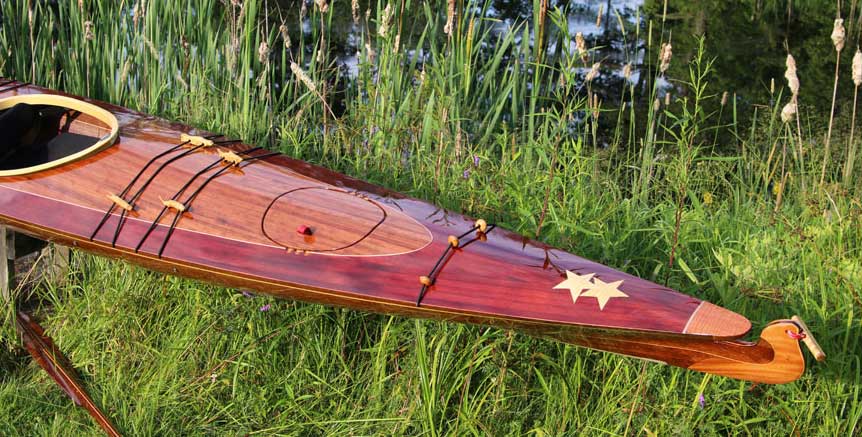I have received very good reviews of the handling characteristics of the Twin Star, as I would expect from my other baidarka designs. Provision was made for a rudder by altering the stern stem to a vertical edge to facilitate rudder installation. No one has not installed a rudder. This design paddles extremely well without a rudder in the hands of experienced paddlers. All the great baidarka qualities are here in a tandem wood strip sea kayak. |