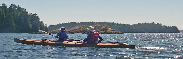 Update - May 2011 "I have attached some pictures from last summer in the Twin Star. She performs as nicely as she looks, both empty on a day trip, and fully loaded for a 3 week camping trip. We had her out in some pretty rough stuff out on the west coast of Vancouver Island (the "wild side" they call it) - swells overlain with wind waves and gusts near 40 knots - and were okay. She felt solid and stable and got us onto the beach without mishap (That said, we should not have been out there. The weather really came on fast, in just a few minutes!). She handles fine on all points of wind and sea, and we even managed to surf her a few times, though that does feel a little hairy in a boat that length. I feel no need for a rudder, though I have to work a bit to keep her on course in a quartering sea. A novice, or someone not willing to use a full repertoire of paddle strokes, might prefer a rudder. I will probably add one around my 65th birthday (4 years away). |